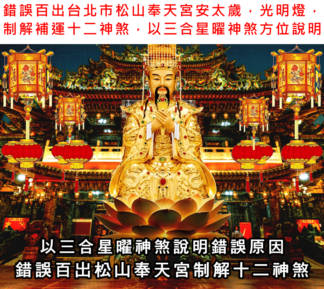 [分享] 嚴重錯誤丙午年台北市松山奉天宮安斗燈,光明燈,太歲燈,制解補運十二神煞,讓人瞠目結舌,以三合星曜流年神煞說明錯誤原因精解
